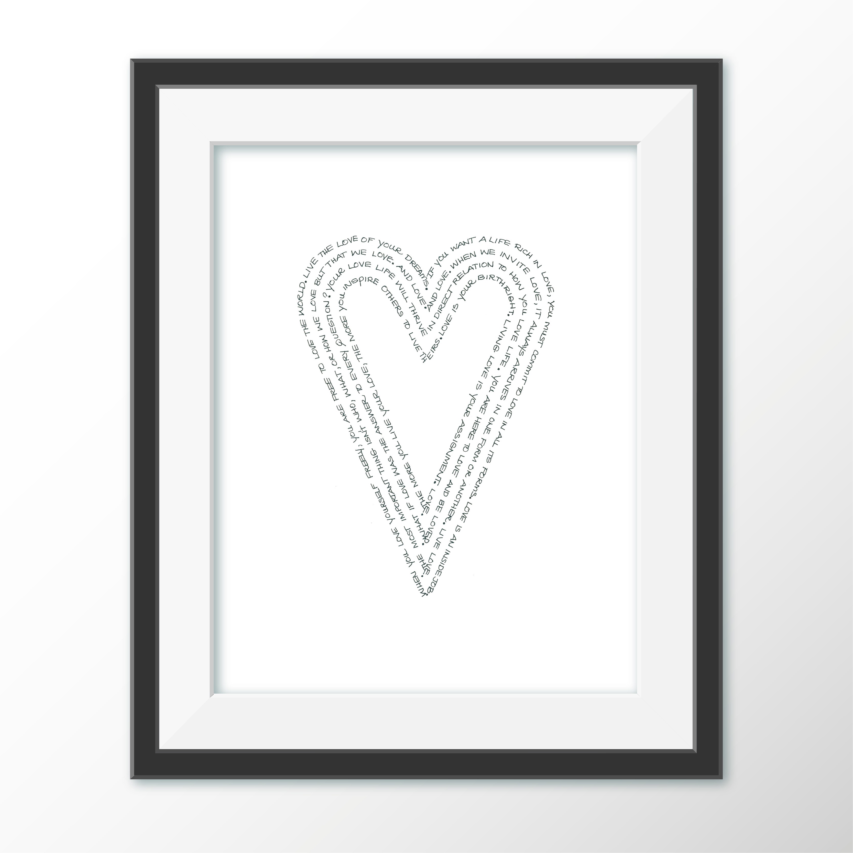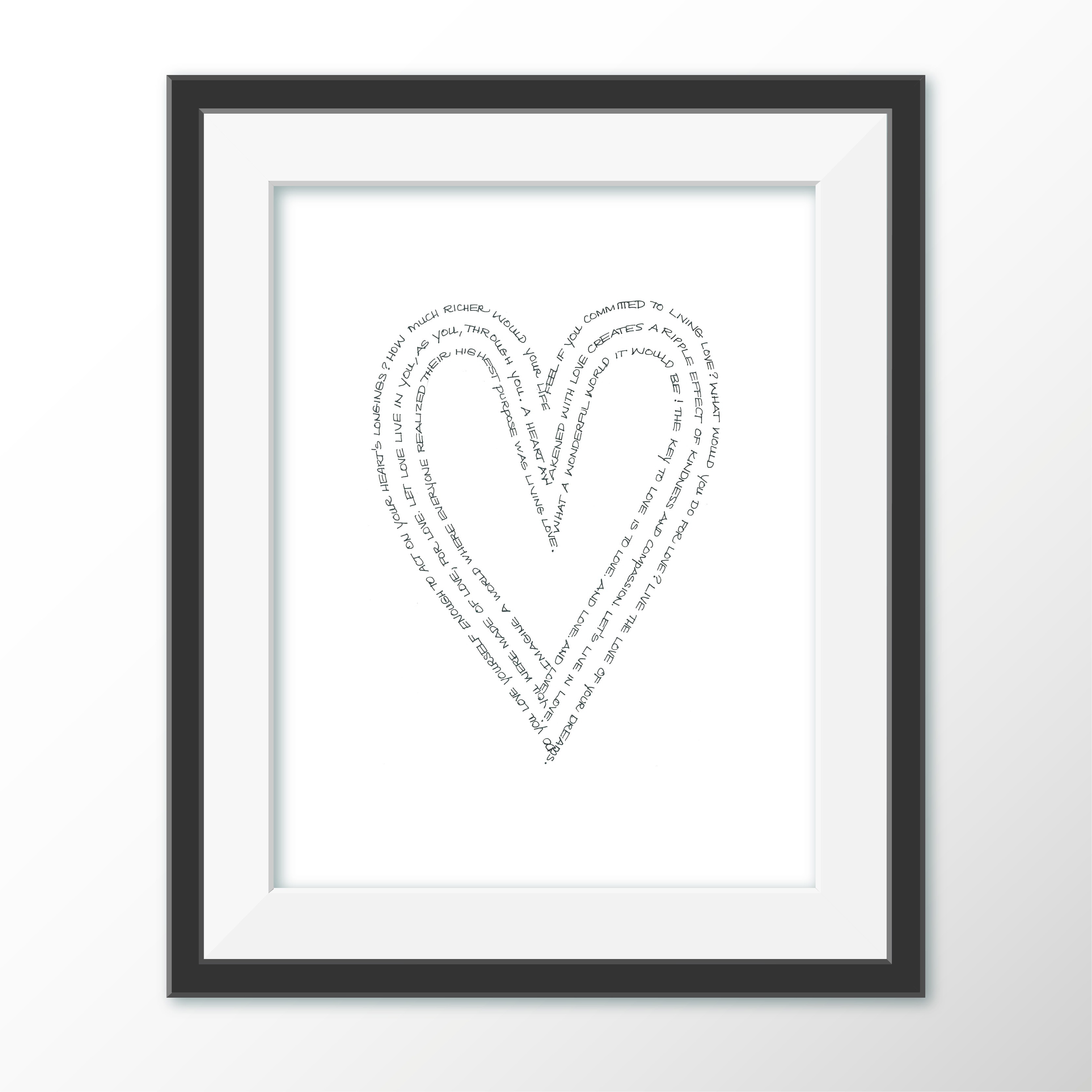 Each 13×17″ Word Art is printed in rich black on radiant white 300gsm archival cover stock—hand-signed, numbered, and created with intention. Lovingly set within a white…