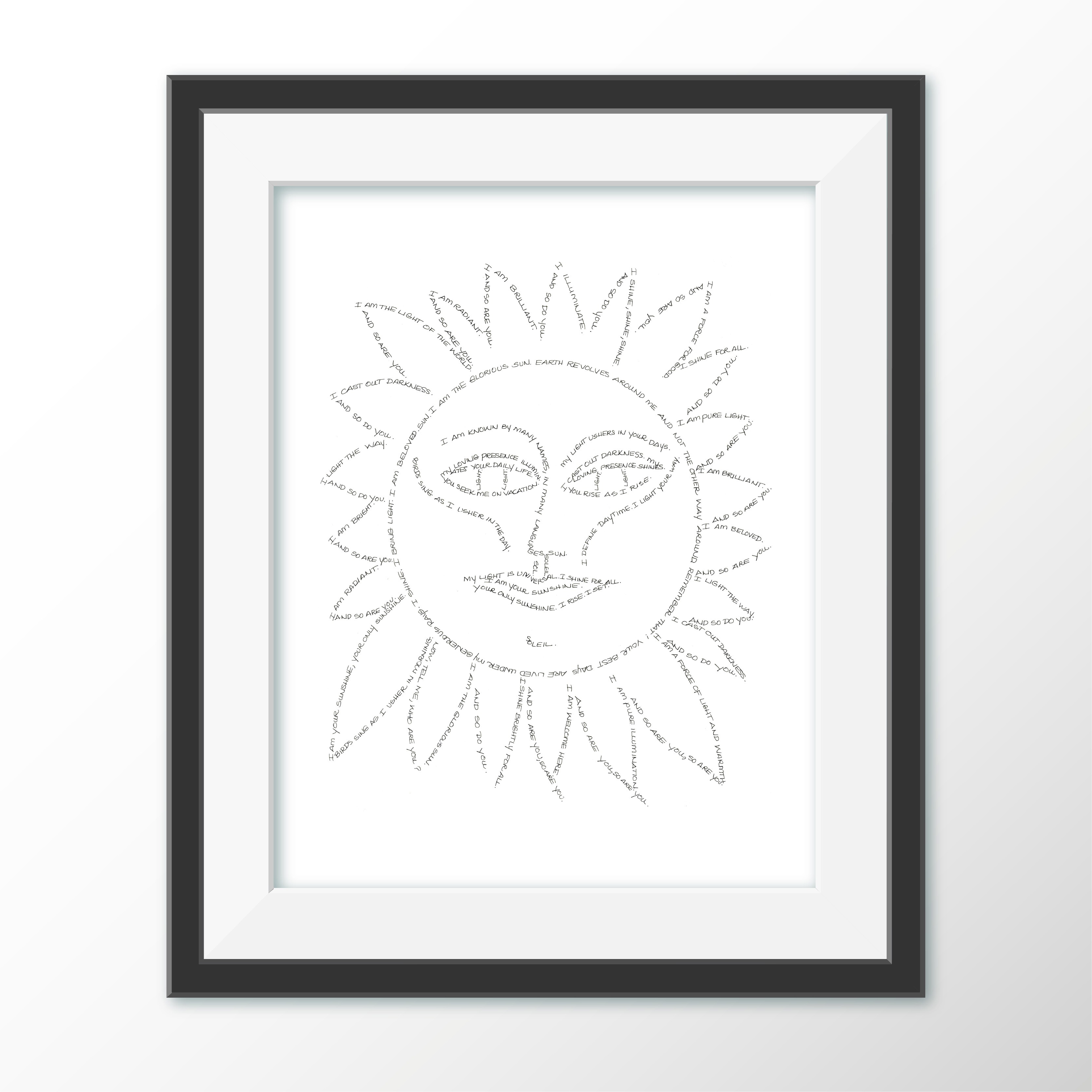 A radiant declaration of presence and power, I AM THE SUN is a reminder of your own brilliance—etched in form, handwritten in truth. Let it hang where your light can remember itself.