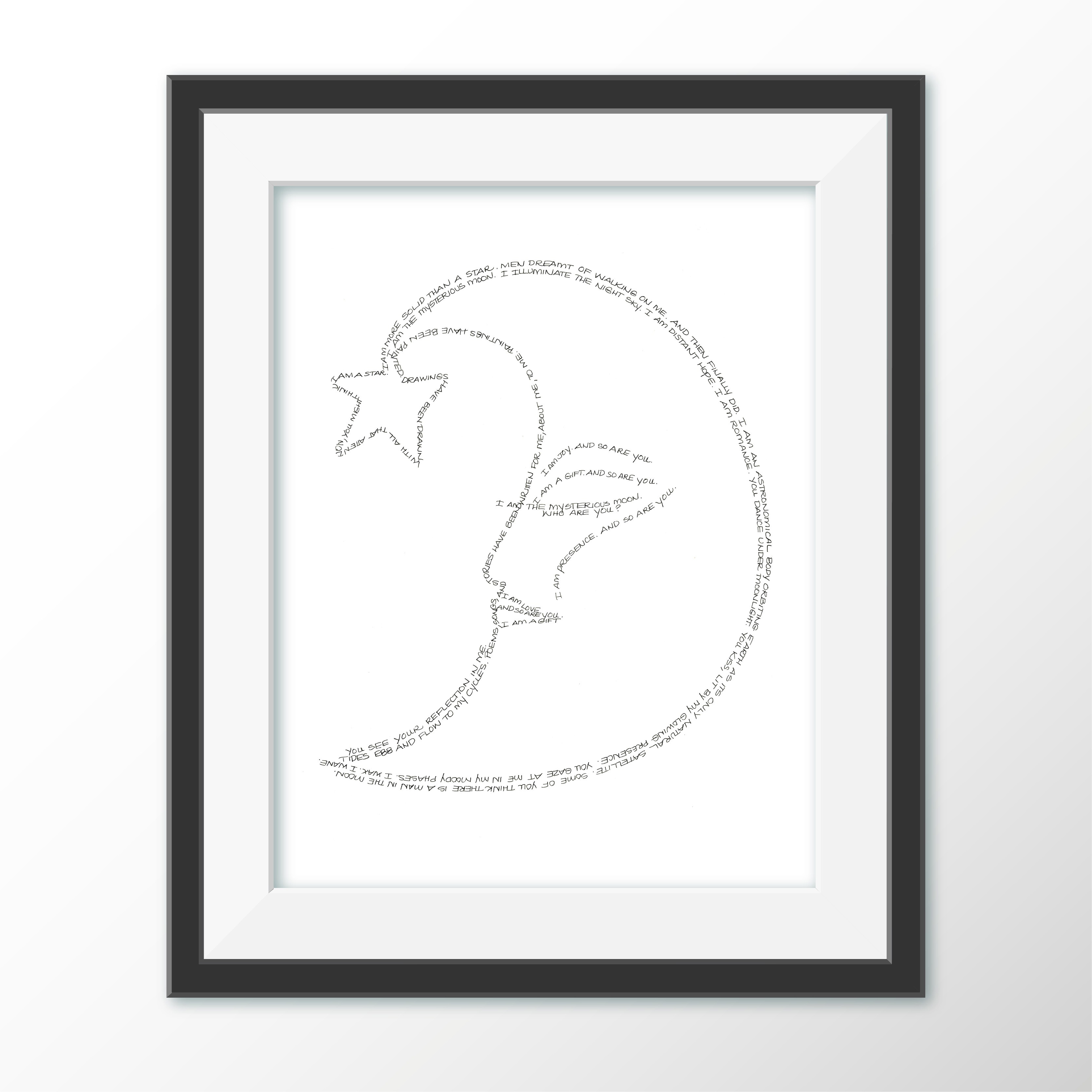 Each 13×17″ Word Art is printed in rich black on radiant white 300gsm archival cover stock—hand-signed, numbered, and created with intention. Lovingly set within a white 16×20″ mat…