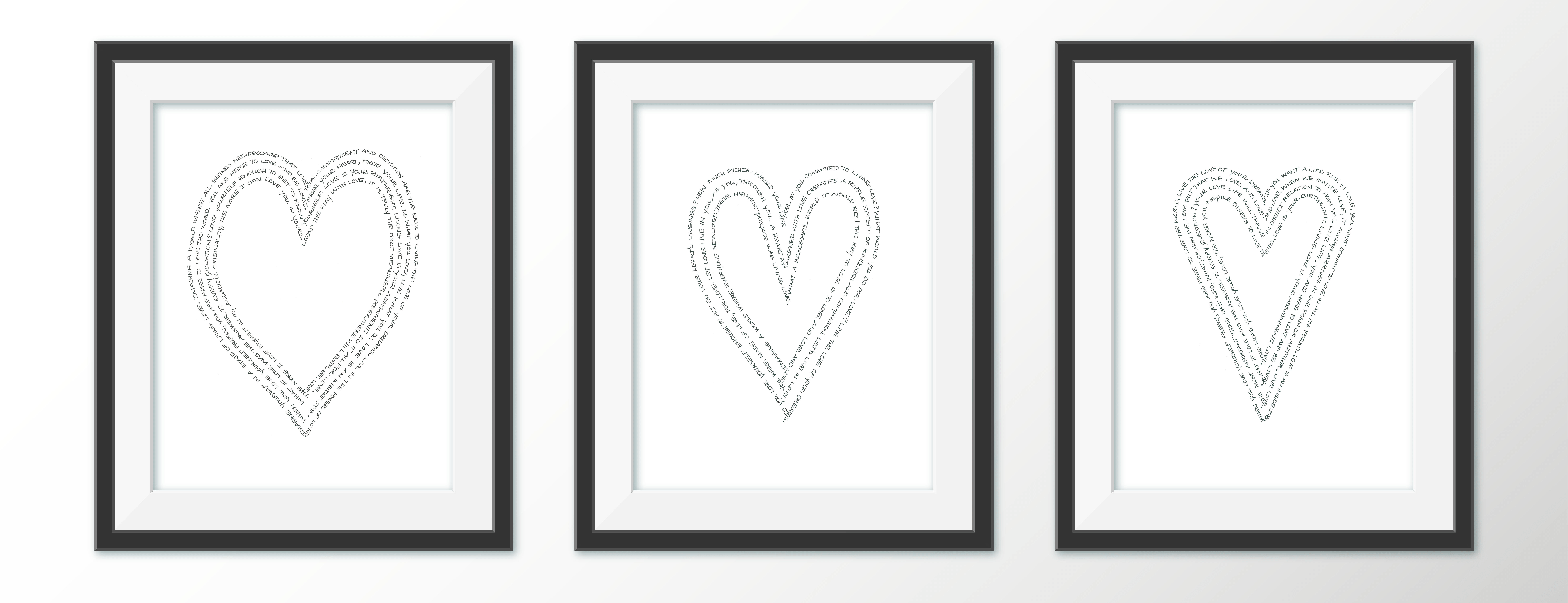Each 13×17″ Word Art is printed in rich black on radiant white—a timeless pairing that allows every line and letter to breathe. Using a dry-toner process that preserves detail and depth, the art is printed on 300gsm acid-free, pH-neutral cover stock with a 95-point brightness, offering subtle brilliance.